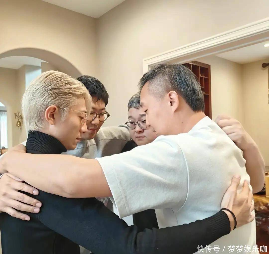 四个兄弟紧挨着站着合影,就像几年前那会儿一样。彼此打气、互相加油,给对方带来勇气。傅子恩戴着眼镜,嘴角微微往下一抿,好像心里藏着不少话说不出口。其实和好友们一块儿吃饭,倒更像是一种疗愈。疗愈你心里的伤痕,填补你内心的空白,让你变得更加有力量去面对未来。