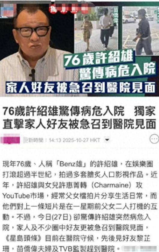 很多人不知道,这位总演小人物的“Benz雄”,身后站着中国近代史半壁江山。他的太公许应骙是慈禧干儿子,姑婆是鲁迅夫人许广平,叔公许崇智筹建了黄埔军校。可许绍雄从不炫耀家世,反而自称“族大有乞儿,我便是枯枝”。演了一辈子配角,他宠女儿宠到豪掷700万开甜品店,送3000万洋房作嫁妆,理由朴素得让人鼻酸:“我年轻时熬通宵拍戏,不就想让家人过好点?”当年黄子华和他合作生意亏损,他偷偷垫钱赔偿;好友黎芷珊说,他总把后辈的台词本标满注释,自己却因“长得老”从没演过主角。这种套路在每次名人去世时都会重演,但这次格外刺眼,因为许绍雄的故事里藏着最鲜明的对比:一边是生前默默资助贫困演员的“老好人”,一边是死后急不可耐吃人血馒头的蛀虫。他用53年的配角生涯告诉我们,真正的演员从不需要主角光环加持,而那些靠消费逝者博眼球的人,终究会被钉在流量的耻辱柱上。TVB官方微博那句“青山远行,艺影长存”,或许才是对这位老戏骨最好的注解——有些人走了,但他塑造的角色永远活在观众心里。